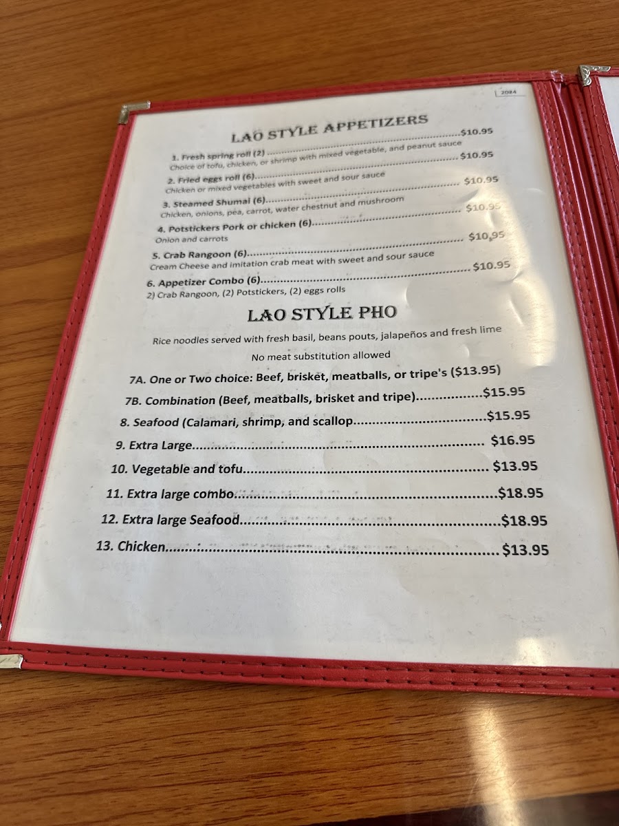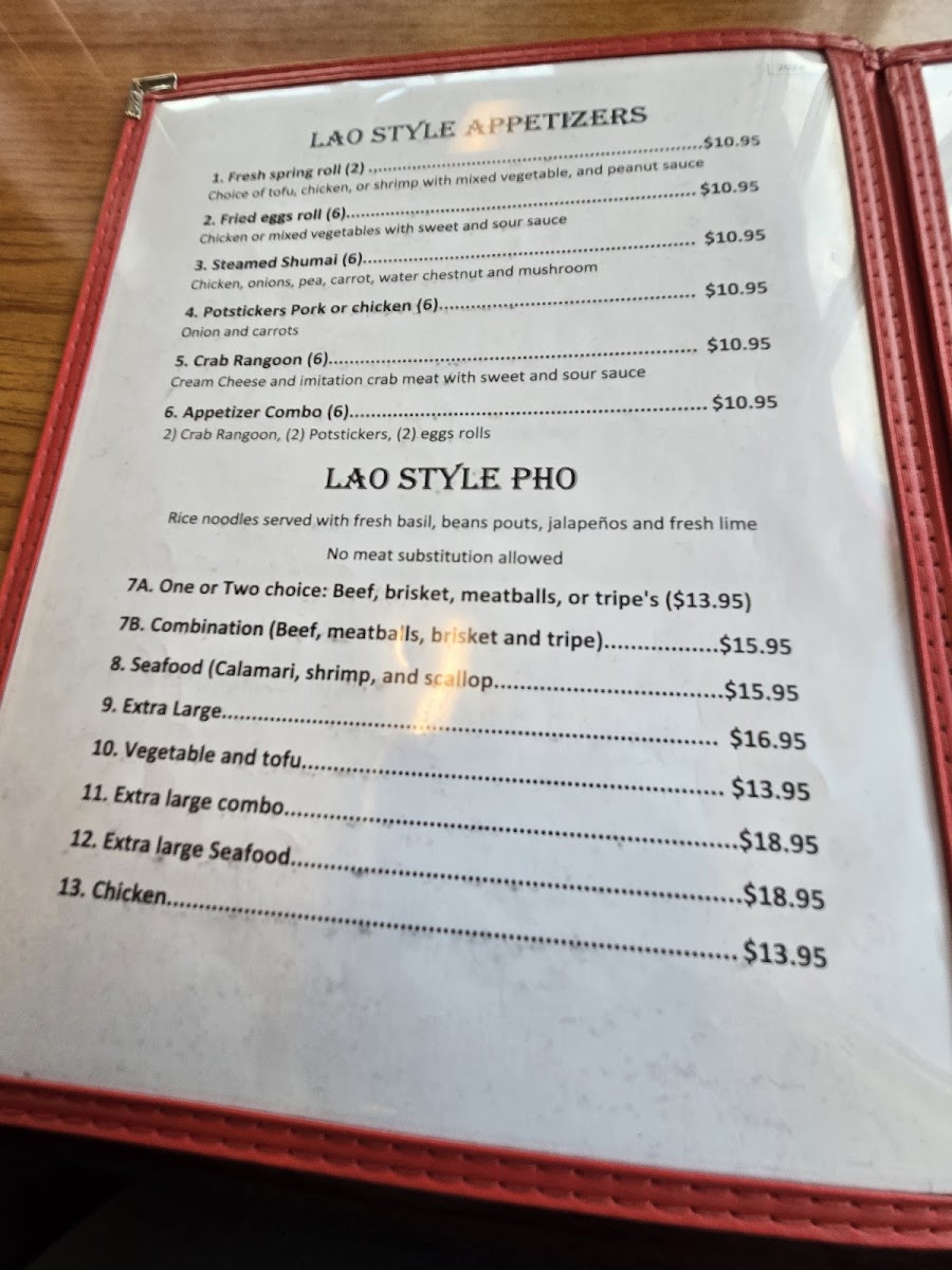The menu at Phở Lao Laan Xang offers a straightforward selection of Laotian, Vietnamese, and Thai dishes that emphasize comfort and authenticity. With a focus on pho varieties and traditional staples, the menu invites diners to enjoy thoughtful, homey meals that suit both a casual lunch or a relaxed dinner.