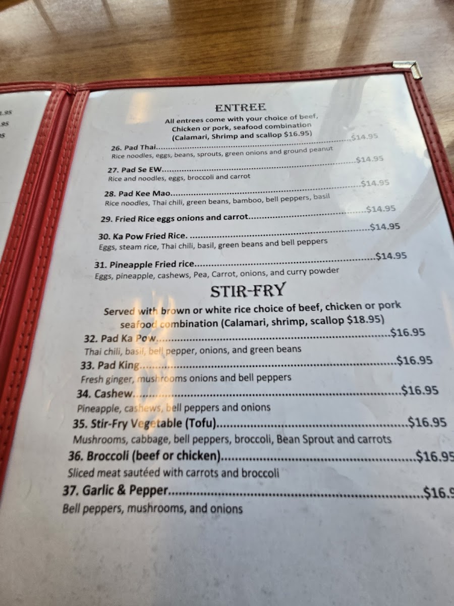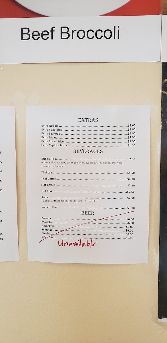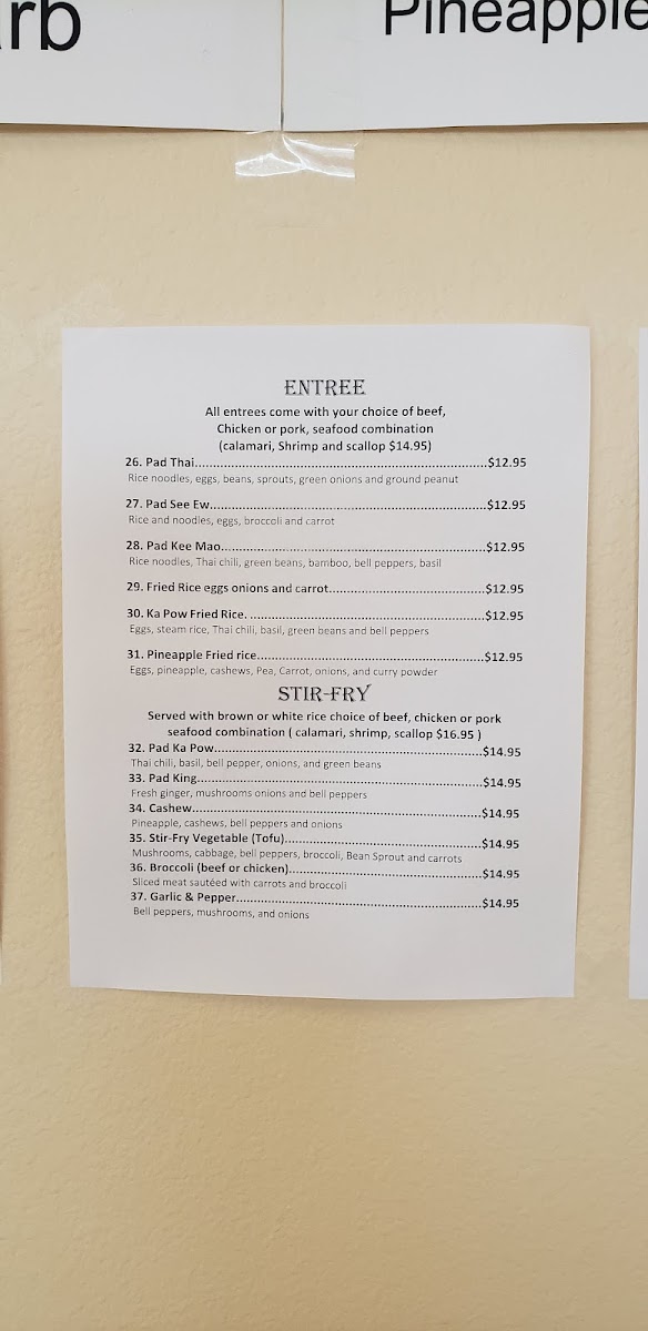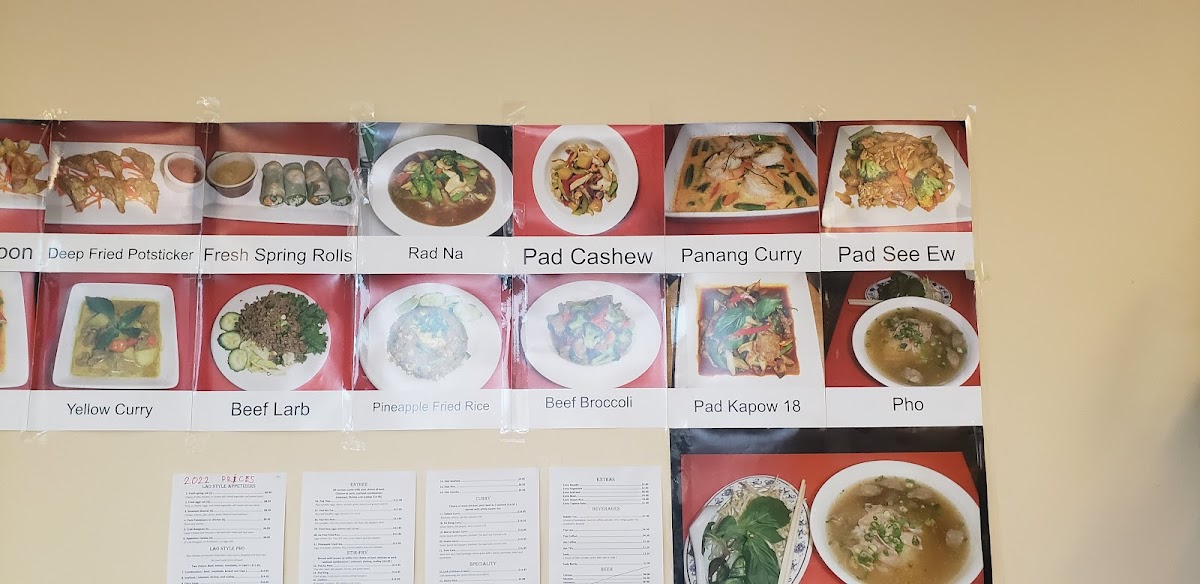 Guests can explore fresh spring rolls, several types of pho like beef & brisket or beef & meatballs, along with signature dishes such as chicken larb and classic Thai pad Thai or pad see ew. The drinks menu complements the food with familiar favorites like Thai tea and refreshing bubble teas, perfect for balancing the savory flavors.